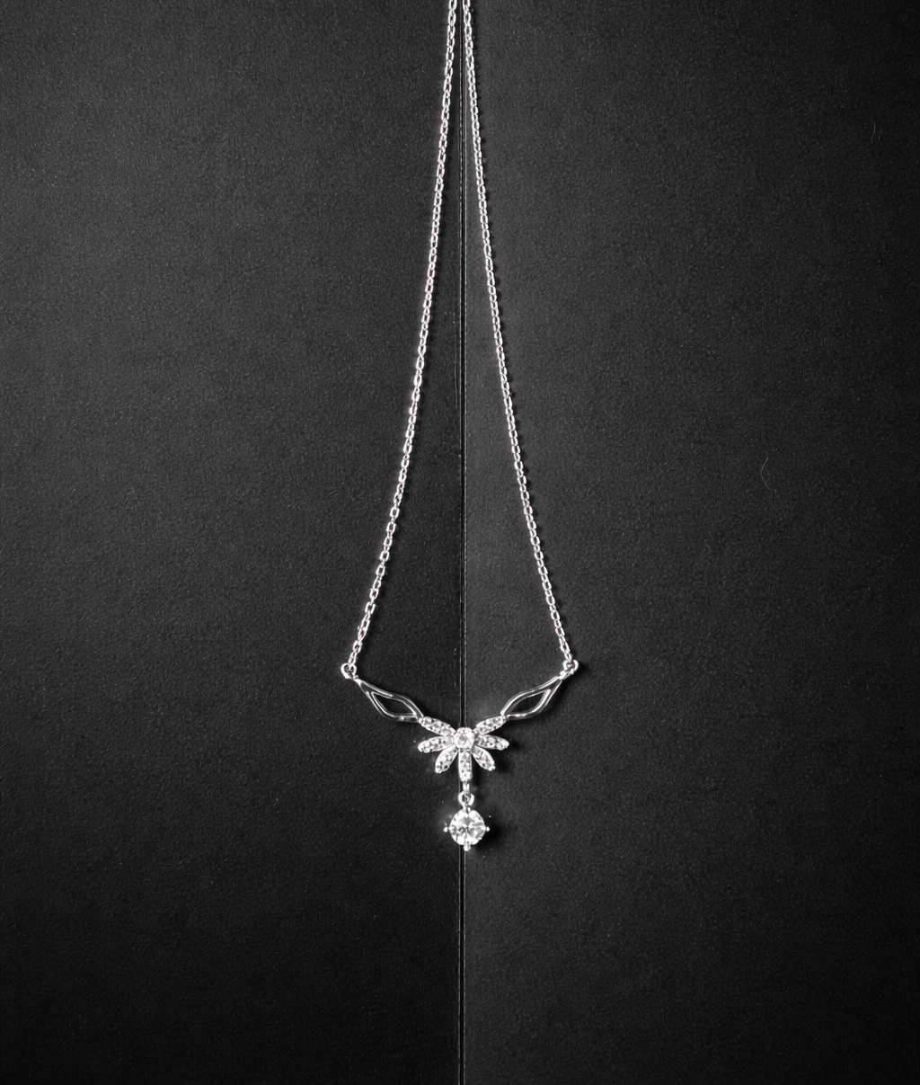 “Inspired by the soft glow of the aurora and the gentle beauty of blooming petals, this necklace reflects elegance in every sparkle”